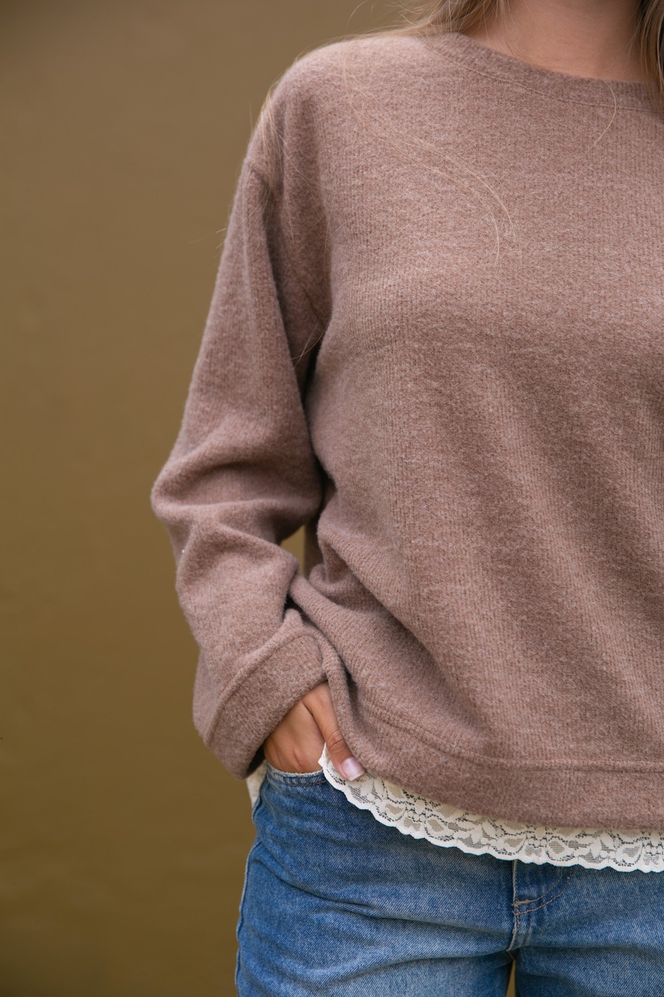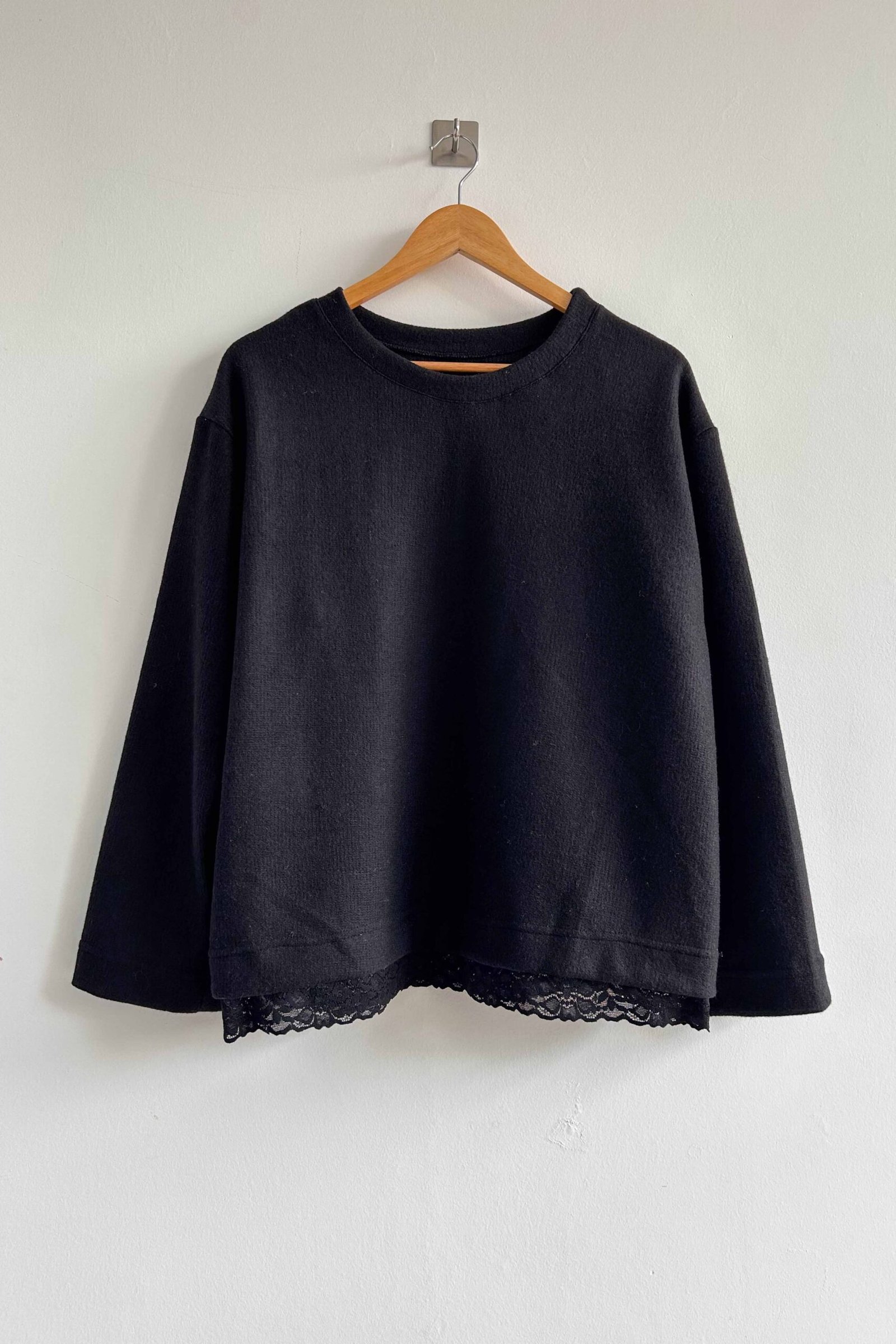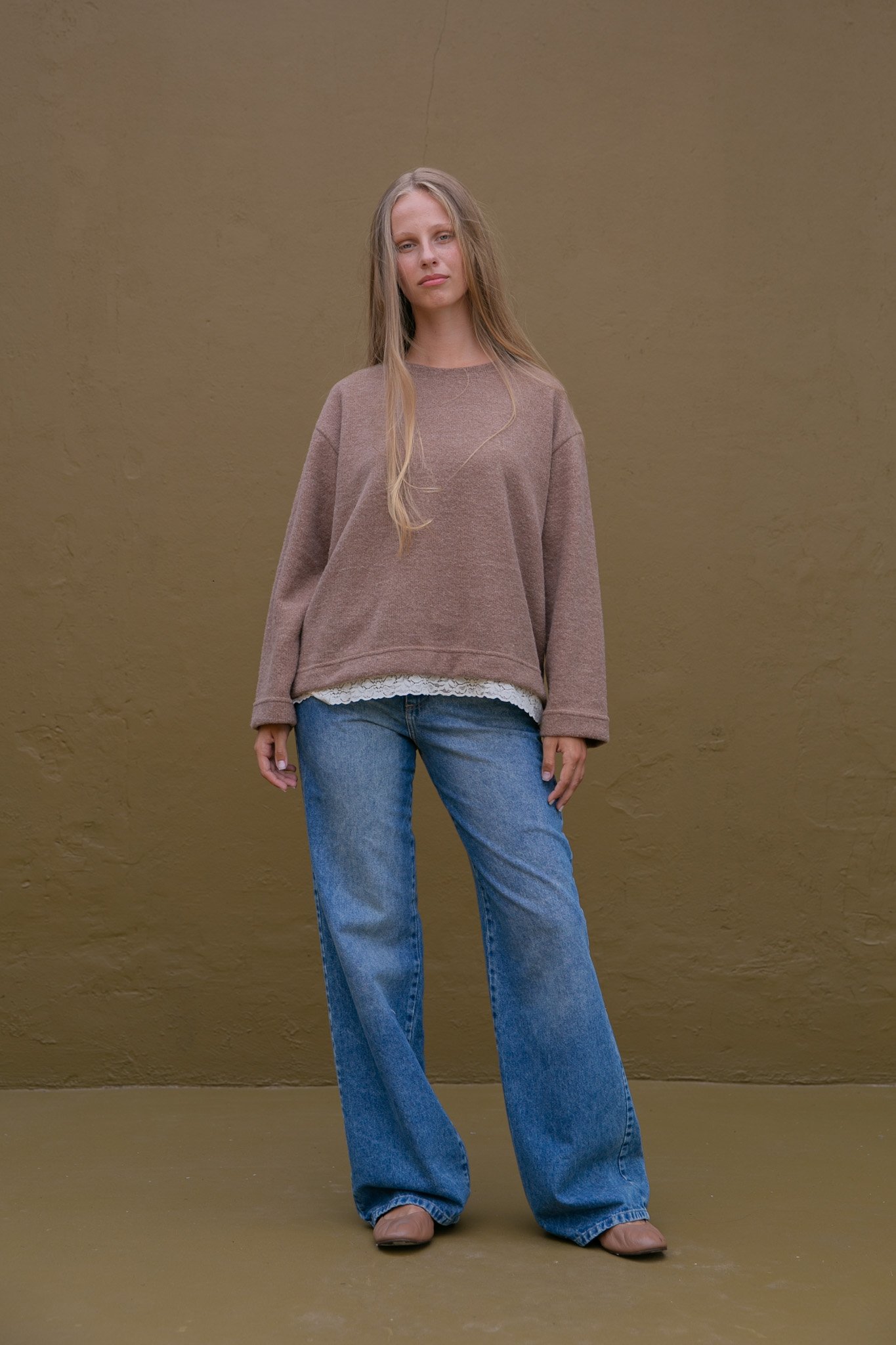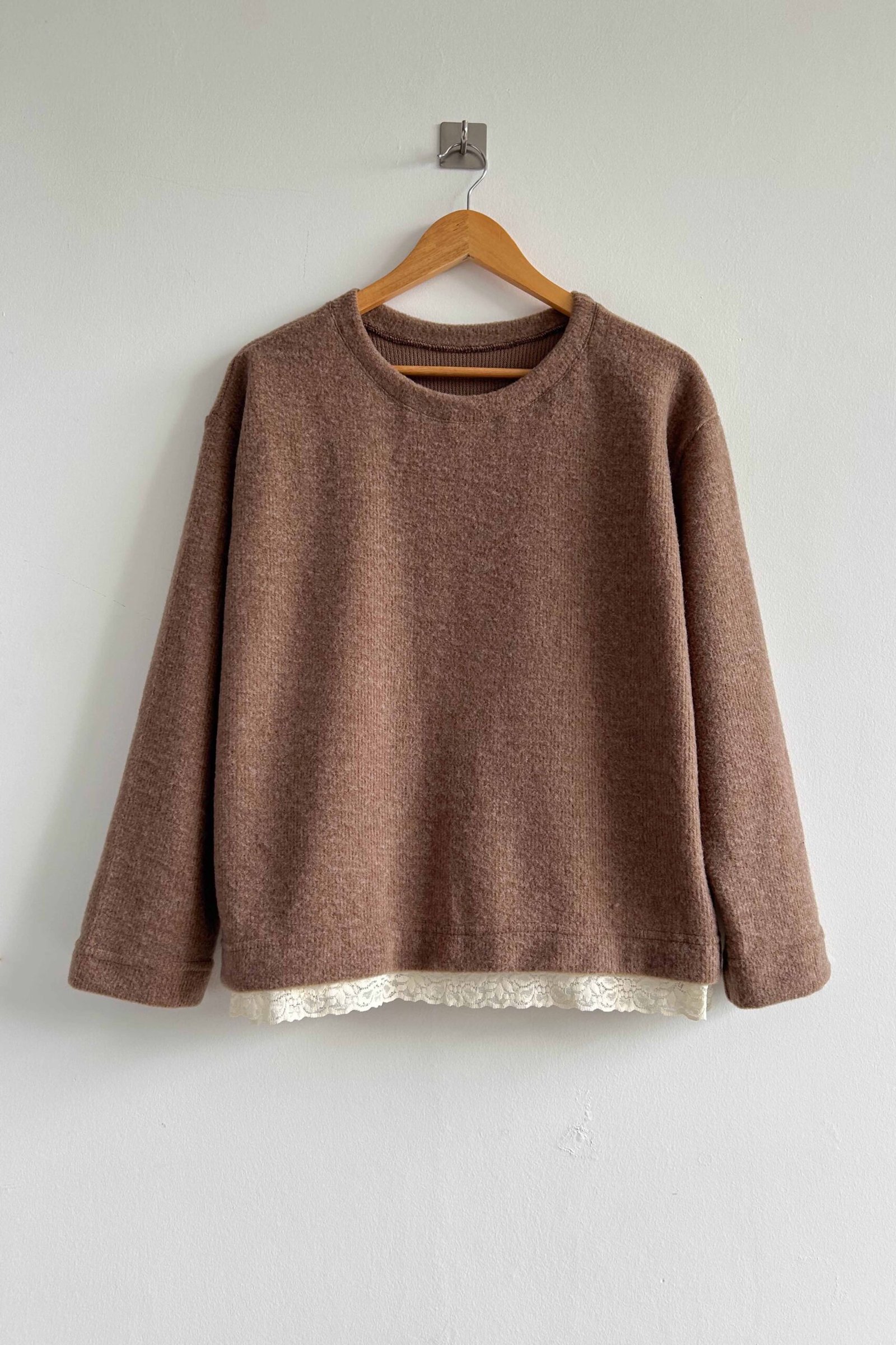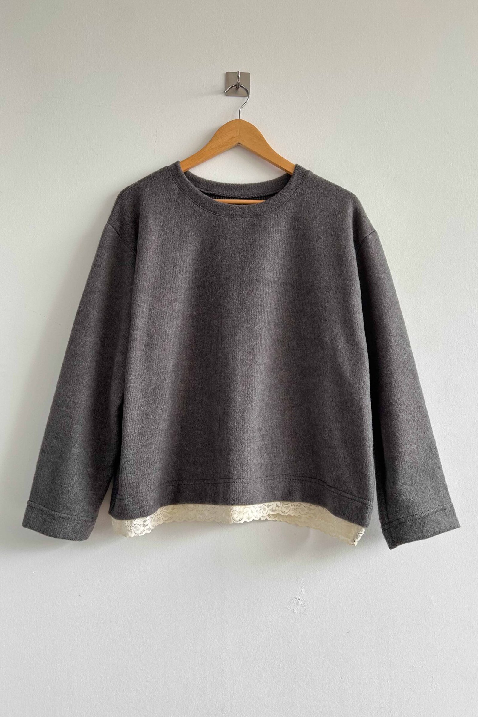 El Buzo Mara está confeccionado en tela mohair, es una prenda abrigada, liviana y suave al tacto. Su detalle con puntilla realza el diseño y suma un toque delicado a un clásico de uso diario.