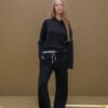 El tejido elastizado acompaña el movimiento y brinda un calce confortable, manteniendo una caída prolija. La modelo lo combina en las imágenes con el buzo Noruega de la misma tela.