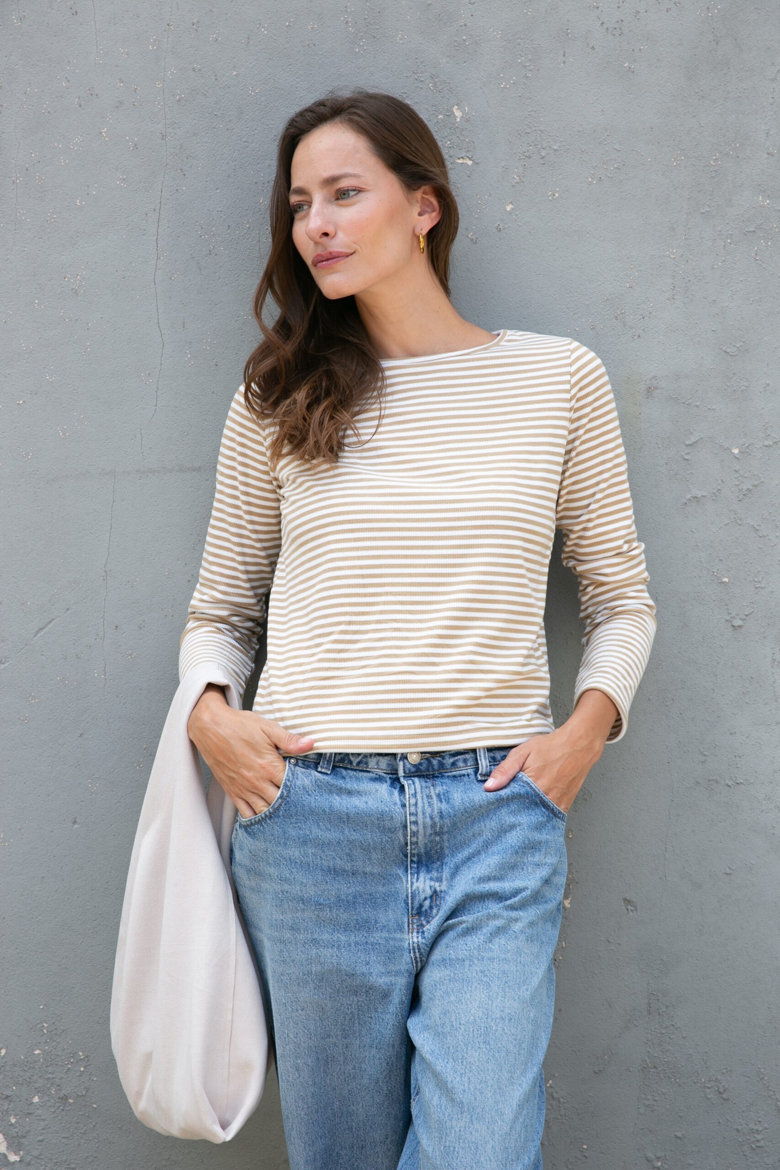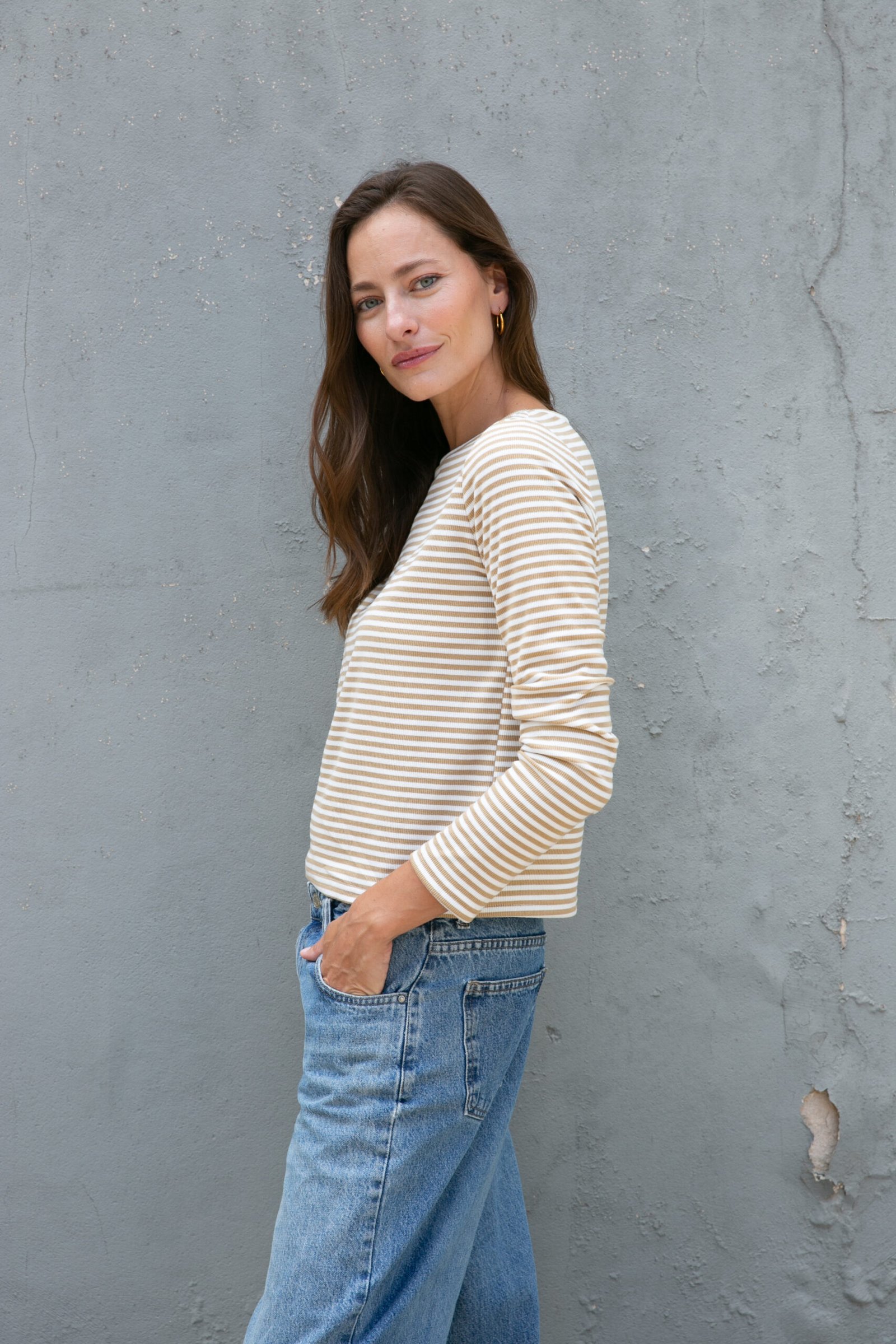 La Remera Ámbar es ese básico con personalidad que no puede faltar esta temporada. Confeccionada en Rayado Marni, de calce clásico y versátil, perfecta para combinar tanto en looks casuales como más armados.